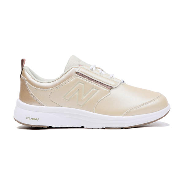 シューレースの両サイドにエラスティックバンドを搭載した脱ぎ履きしやすい構造のもと、撥水加工アッパー、ソフトなライド感を提供するCUSH+ミッドソール、屈曲性と耐久性に優れたアウトソールを採用し、シャイニー素材で女性らしくエレガントに彩った全3色を幅広2Eウイズで展開。