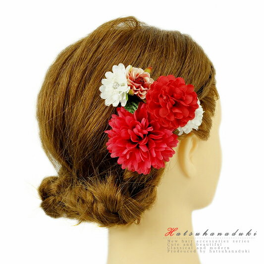 ヘアクリップ「ダリア&かすみ草Uピンセット」【ふりふ かんざし 髪飾り ヘアアクセ ダリア かすみ草 花 白 赤 青 ピンク 浴衣 ゆかた 成人式 卒業式 ジュニア袴 結婚式 七五三 7歳 振袖 袴 和装 着物 きもの レトロ かわいい ショートボブ ロング アップスタイル】