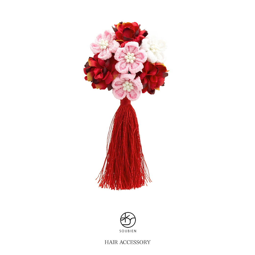 七五三 髪飾り 花 椿成人式 振袖豪華赤 ピンクちりめん つまみ細工結婚式 卒業式 袴 セット【楽ギフ_包装選択】【楽ギフ_のし】【楽ギフ_メッセ】