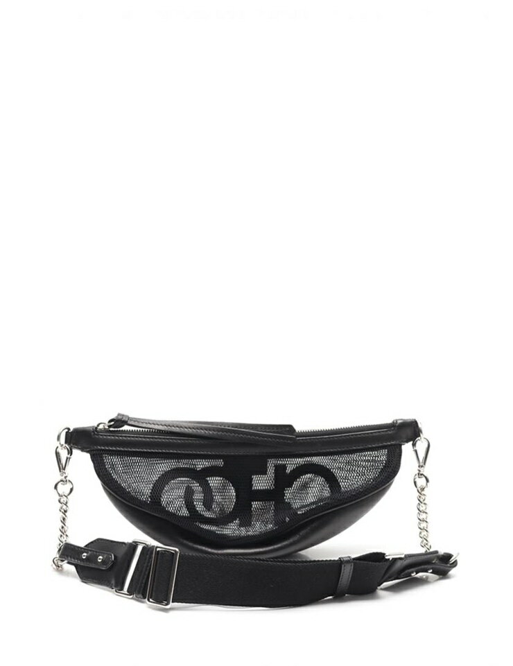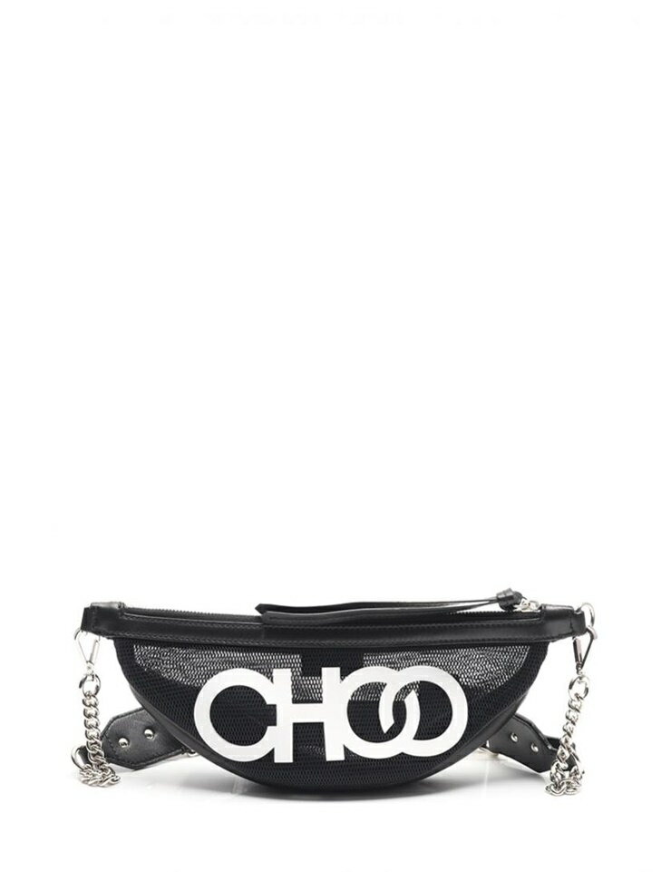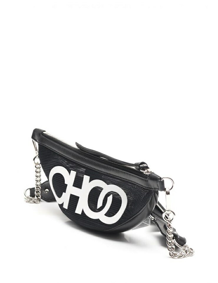 新品未使用展示品 JIMMY CHOO ジミーチュウ FAYE ウエストバッグ ボディバッグ レザー メッシュ 黒 白【本物保証】【中古】