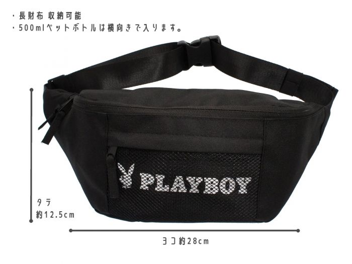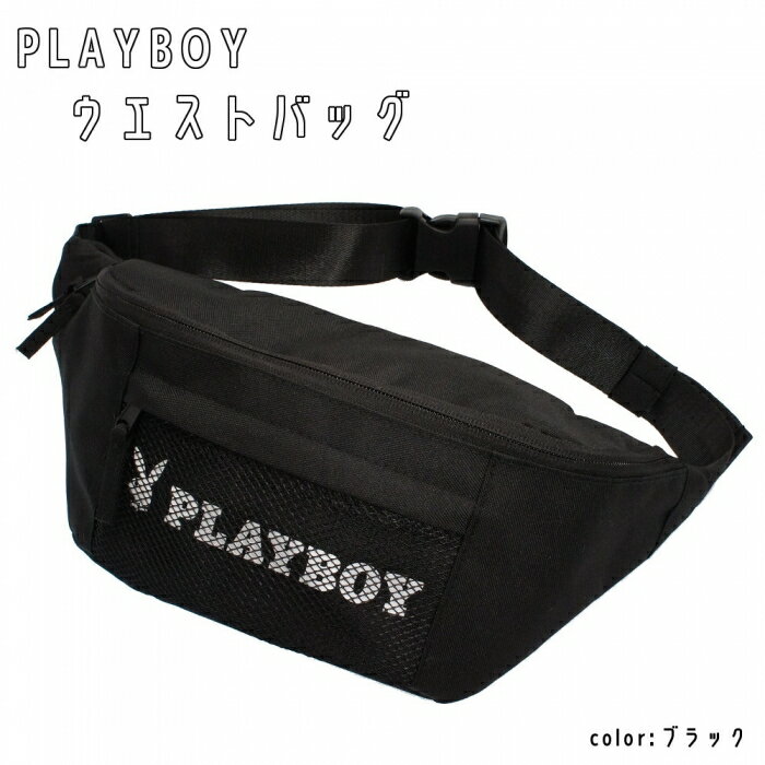 PLAYBOY メッシュ ウエストバッグ ブラック ウエストポーチ レディース メンズ 小型 プレイボーイ 長財布入る プレイボーイ ブランド 人気 通学 入学 新学期