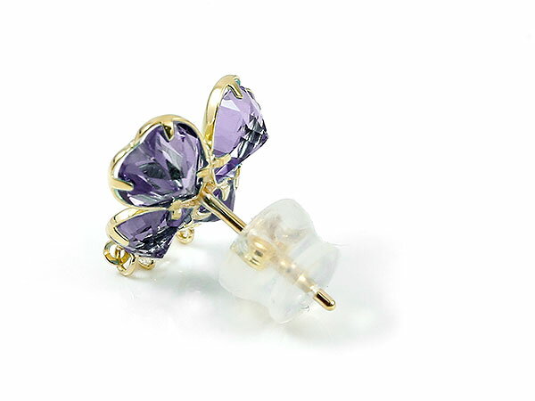 材質 イエローゴールドk18(品質を保証するk18の刻印があります) 宝石名 アメジスト 5ミリハート 2石、4ミリハート 2石 (2月の誕生石) 天然ダイヤモンド トータルで0.28ct 大きさ デザインの幅 14ミリ×11ミリ もっとステキに!!もっと贅沢に!!ジュエリーのオプションはこちら 耳元で羽ばたく可憐な蝶々
