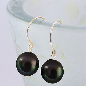 人気のフープピアスにタヒチ黒蝶真珠を組み合わせたシンプルなピアスです。
