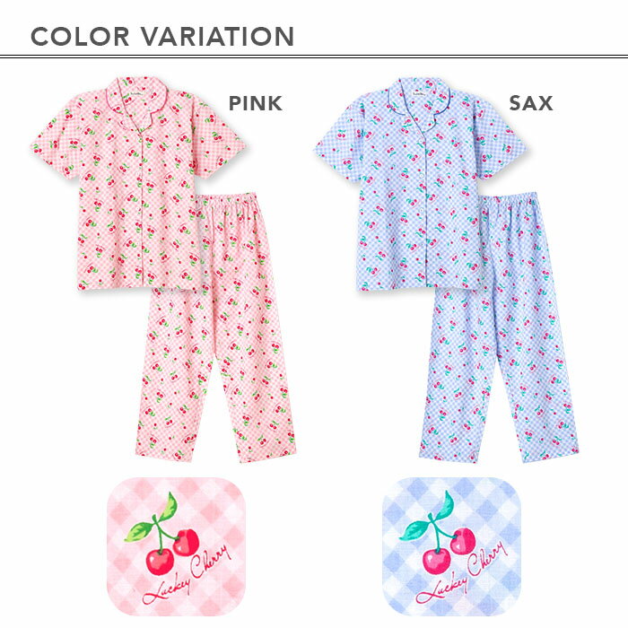 かわいいチェリーモチーフに釘付け チェリーアーガイル柄パジャマ SPEC -スペック- 素 材 綿 100% 生地の厚さ 春・夏 薄手のシャツ伸縮性:なし サイズ M・L・LL・3L カラー ピンク、サックス 仕 様 トップス半袖/丸衿パイピング仕様/胸ポケット パンツ長パンツ/ウエスト総ゴム/ゴム取替口 注 意 『 綿製品 』は乾燥機を使用すると、大きく縮む場合がありますので、乾燥機のご使用はお避け下さい。