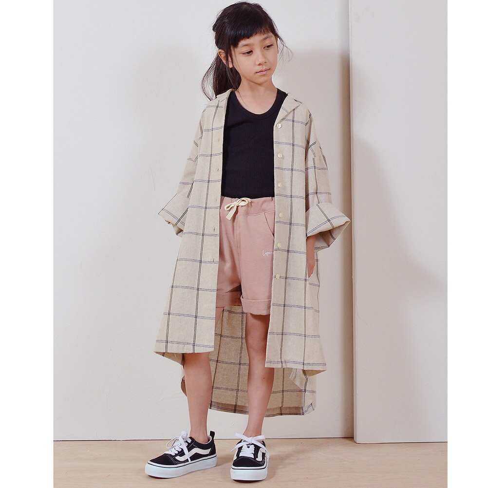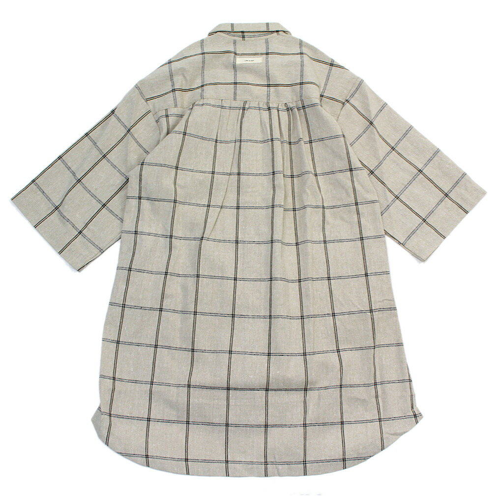 “アンディニー”のチェックガウンワンピースコートリネン混紡で涼やかなチェックリネンシーチングのガウンワンピース。