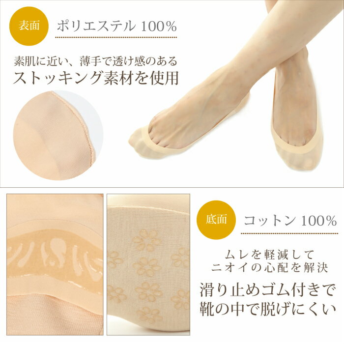 パンプスから 見えない 超極浅 フットカバー なのに本当に 脱げない!底面は吸湿性に優れたコットン100%仕立て。