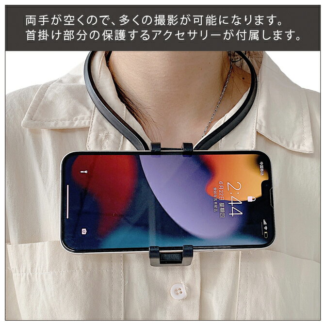 【自撮り】【セルフィー】【ハンズフリー】【ライブ】【動画】【撮影】【首かけ】 スマホ スマートフォン ネックホルダー iphone アンドロイド スマフォ アクセサリー ネック スマホ 使用可 ショルダー リュック ベルト マウント 首掛け ホルダー ウェアブル 動画撮影